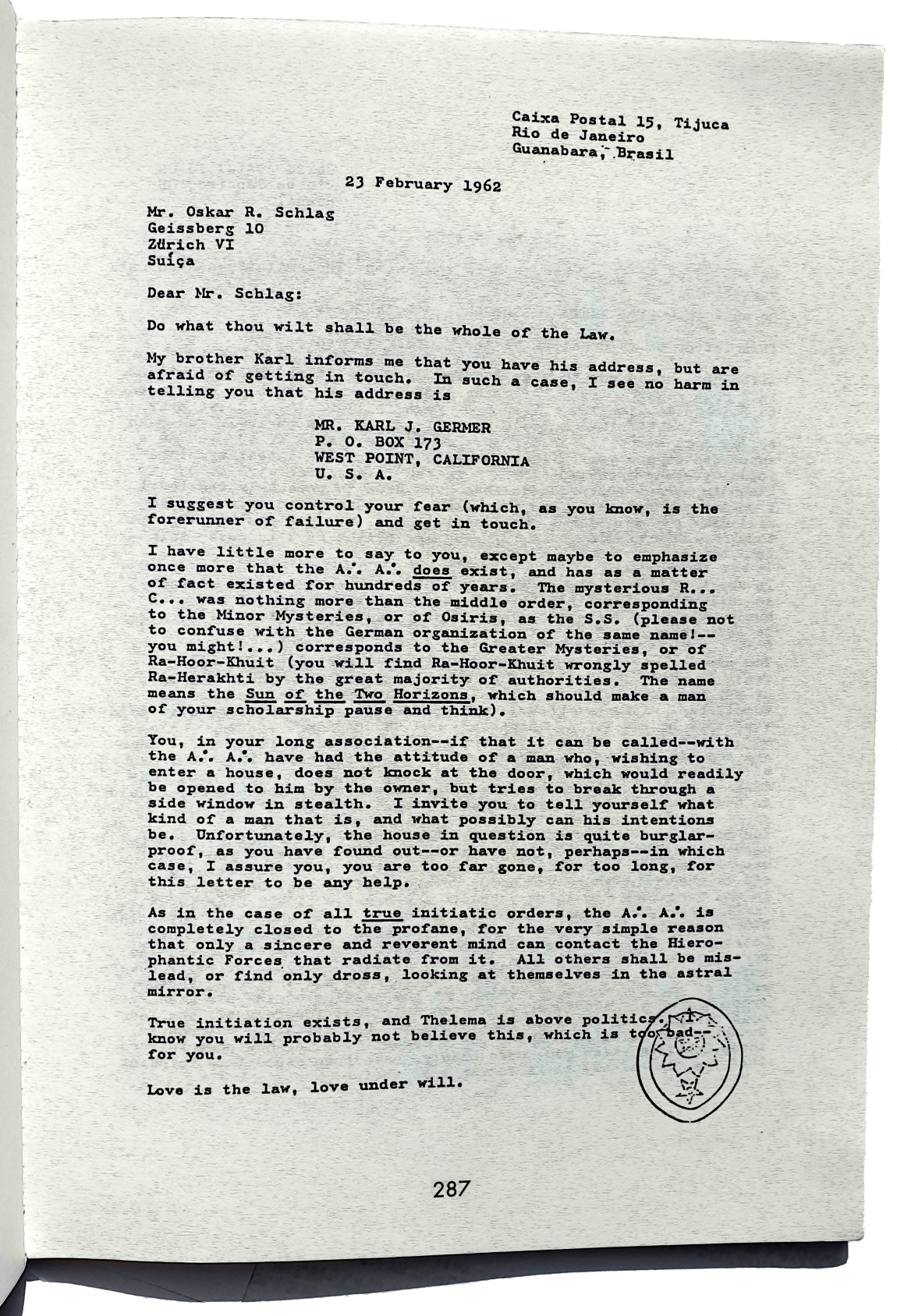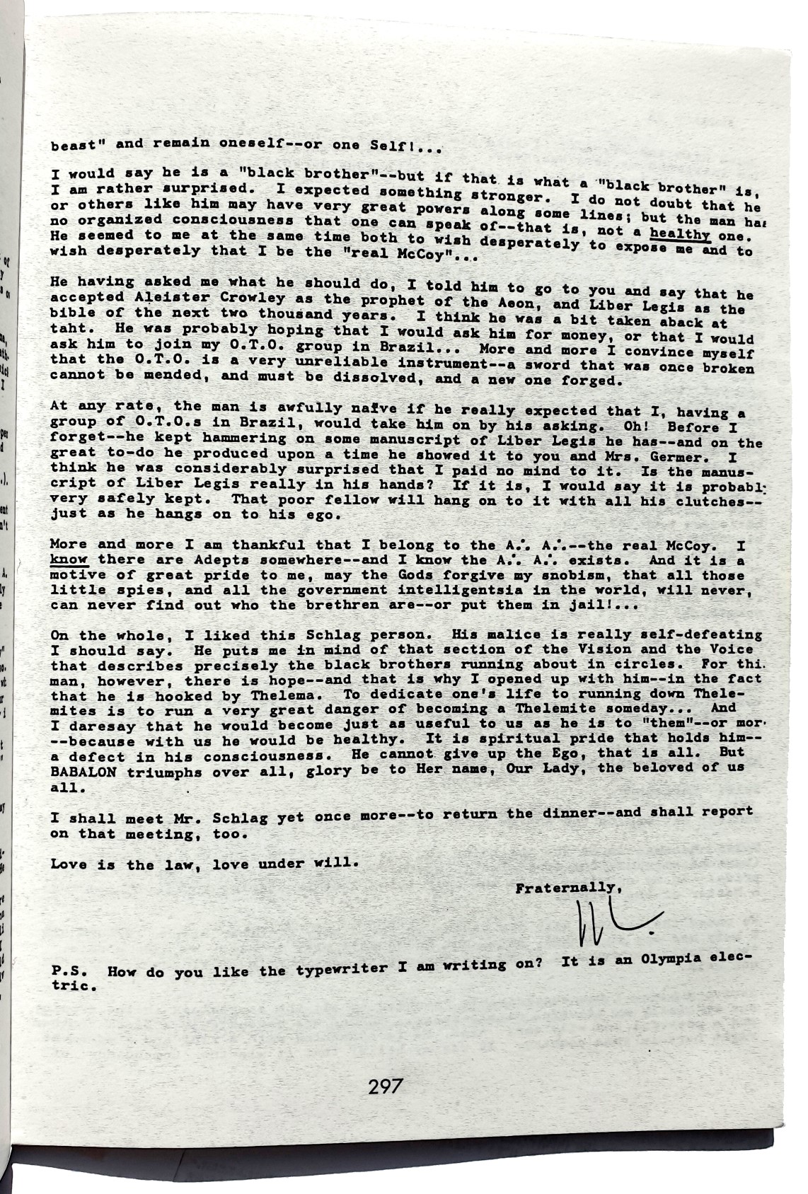![]() The documents presented below genuinely astonished him. He could not have imagined the degree to which he had impacted the individuals mentioned in these writings. Evidently, Schlag did not take all of this especially seriously. At our very first meeting in the mid-1980s, he remarked with considerable surprise: “Why?! The O.T.O. still exists?” On this webpage, the documents are presented without additional commentary. It is therefore essential to take into account Schlag’s own remarks, corrections, and retrospective observations, which may be found right here. |